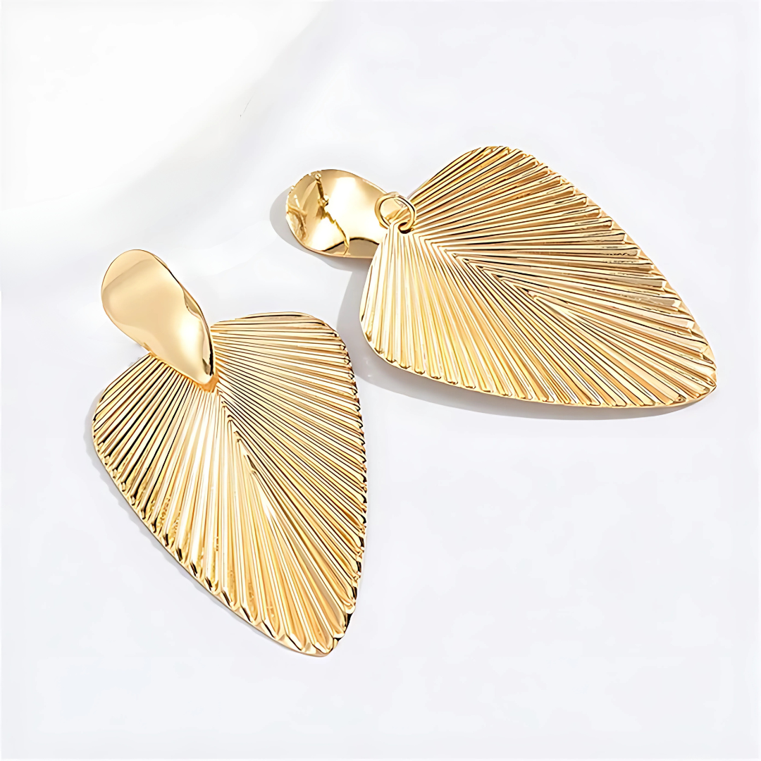 Make a bold statement this summer with our textured gold leaf earrings—an eye-catching pair that brings effortless glam to any outfit. Designed to turn heads, these lightweight drops are perfect for beach days, rooftop nights, or elevating your everyday look with a touch of golden drama.