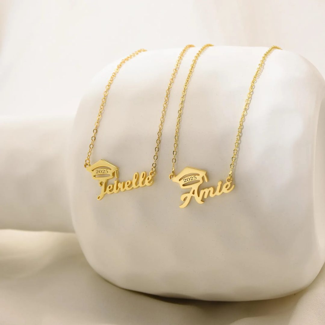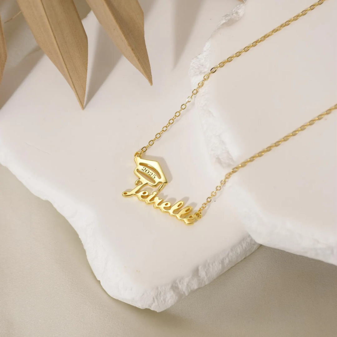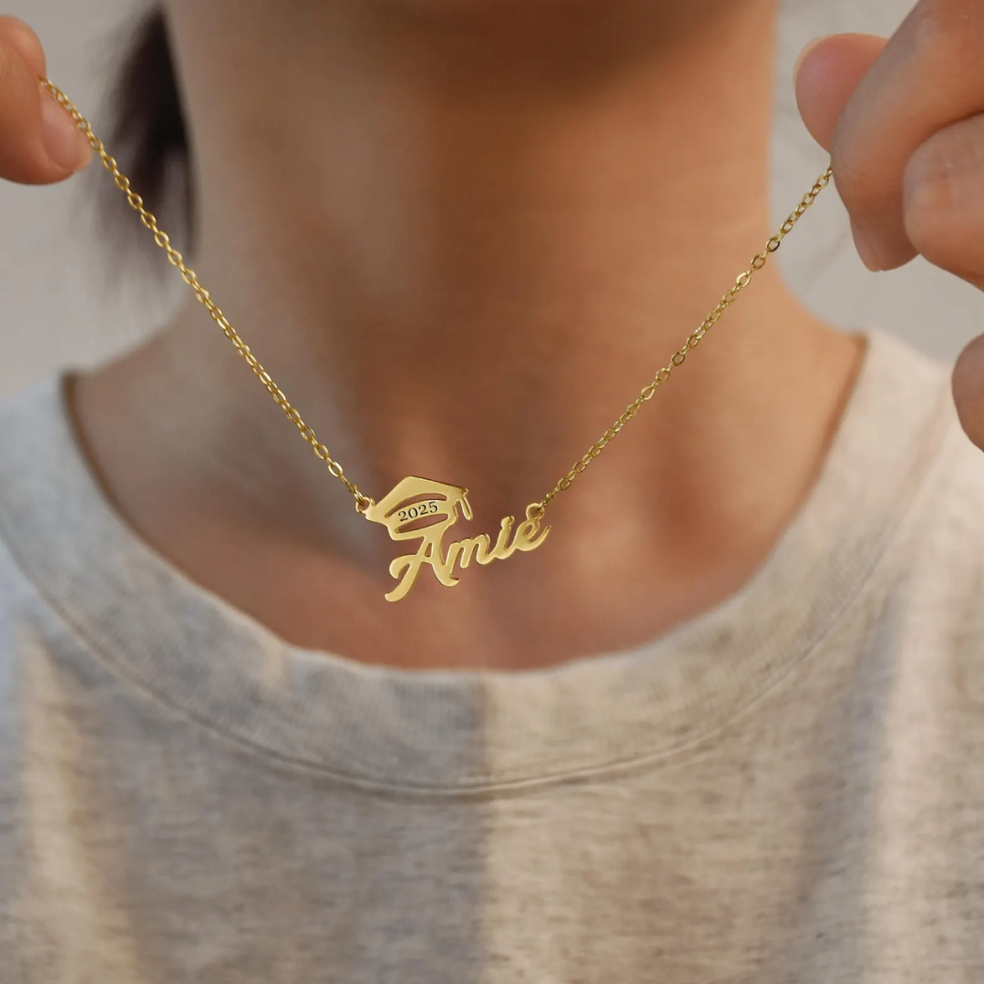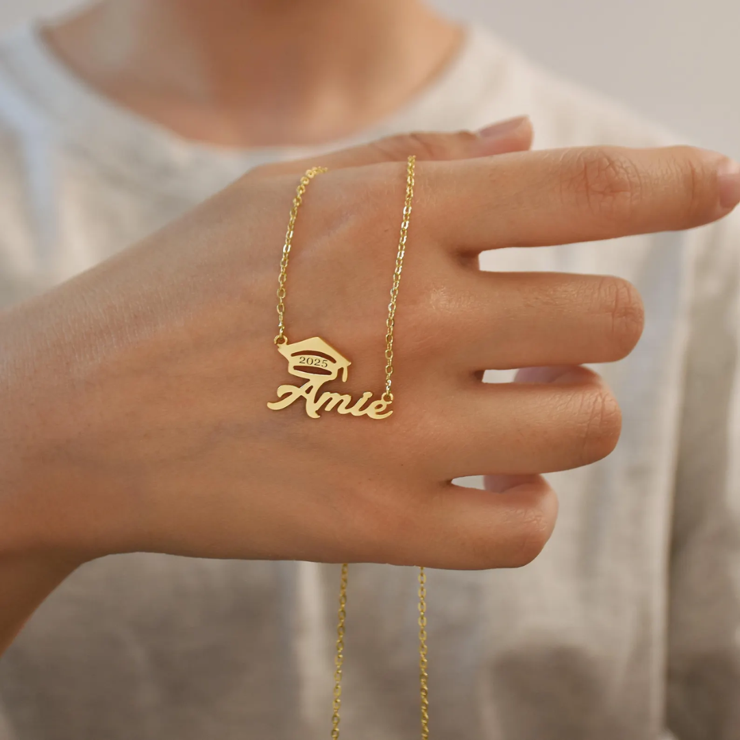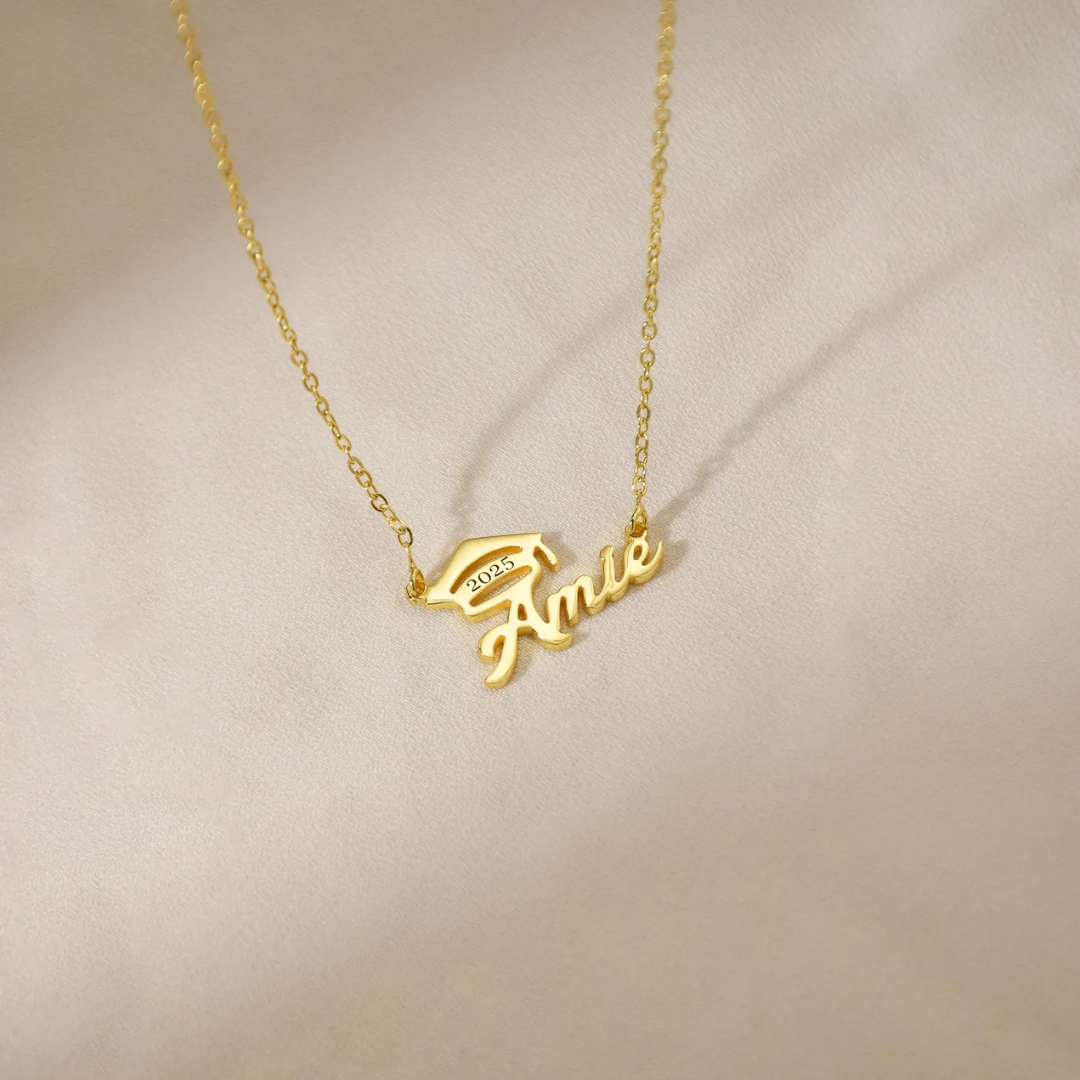 Celebrate her achievement with our 18K Gold Custom Graduation Necklace—a timeless keepsake she’ll cherish forever. Personalized with her name and crowned with a graduation cap detail, this elegant piece captures both style and sentiment in one meaningful gift.